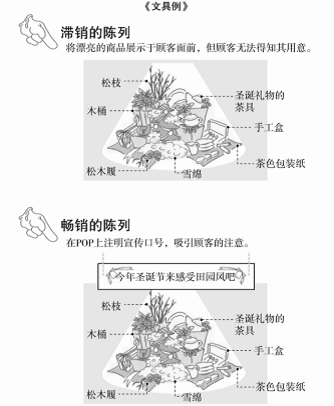 为展示的商品加上宣传口号 即使绞尽脑汁将商品展示在顾客面前,但如果不能让顾客明白“商品的魅力是什么”、“商品的卖点是什么”的话,也无法引起顾客的兴趣。 即使商品展示本身做得再漂亮,如果没有附加信息的话顾客同样也产生不了兴趣。 那么应该如何改善这一点呢?不妨试着为展示的商品加上宣传口号吧,通过这一口号可以引起顾客的兴趣。