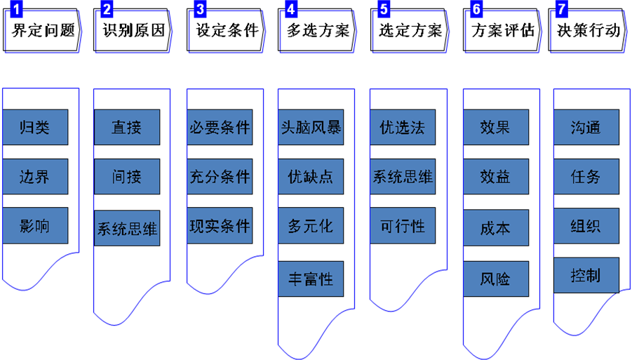 经营分析七步法是一种需要长期训练的很好的分析方法。采用这样的分析方法可以做到由分散到聚焦,既不失看问题的全面性,又不失看问题的深刻性和针对性,可以很迅速地提升我们的经营分析的能力与水平,提升我们的决策能力。 上文我们提到,针对经营分析无逻辑、经营分析不深入、经营分析不聚焦这三类典型的经营分析中所存在的问题,我们可以用经营分析七步法来有效地提升我们的经营分析能力,下面我们就来介绍经营分析七步法。 首先我们来看世界著名咨询公司麦肯锡的分析解决问题的思维框架: 麦肯锡方法的精髓其实就是“大胆假设、小心求证”,“以假设为先导”就是要求我们在做任何推理判断之前,一定要先做假设,如果没有这些假设的话,那么我们就无法从事后续的工作;但在假设完了以后,有些人会把这些假设当作事实而不加以验证,这就犯了先入为主、戴着有色眼镜看问题的错误,所以我们要以事实为依据分析判断问题;最后是通过结构化分析来展现事物之间的因果关系,从而找到问题的病症,最终有效地影响事物的发展。 那么,我们怎么通过结构化分析找到问题的症结,从而采取有效的行动呢? 结构化分析方法的基本准则就是MECE,它的含义是既包罗所有影响因素的,又相互不重叠的,各因素间是独立的,也即不重复不遗漏。这看起来很简单,但真正做起来却并不容易,如下图所示,我们常常会犯这样三种错误:不遗漏但是有重复、有遗漏无重复、有遗漏有重复。 曾经在给中国移动做咨询项目时,最重要的一项工作就是找到影响某一问题的所有因素,然后对这些因素进行区隔,哪些是一级影响因素、哪些是二级、哪些是三级,诸如此类,直到把所有的因素都搜寻到、归结清楚了,也就做到不重复不遗漏了。这既是做咨询的基本功,也是一项最重要的工作。 在明白了不重复不遗漏这一最基本的准则以后,接下来我们要做的就是“经营分析七步法”了(如图所示)。 下面我们以标准超市如何做好蔬菜经营为例,来说明如何运用经营分析七步法。 第一步,对问题进行界定。 首先,我们要对问题进行归类,蔬菜经营是标超生鲜经营中的一个重要组成部分,而对蔬菜经营问题的有效解决必须从整个经营的链条全过程来考虑,才有可能真正有效地解决这一问题。这样,蔬菜经营的边界就是蔬菜经营的全过程,从采购、配送、定价、销售、陈列、控损等所有环节来系统思考,才有可能有效地控制这一问题。 第二步,识别原因。 就是去分析,目前影响本公司蔬菜经营的直接因素有哪些,间接因素有哪些,对于直接因素和间接因素的分类可以按照它们是否直接影响蔬菜经营来分,属于直接影响因素的有蔬菜的品质、蔬菜的采购成本、蔬菜的定价、蔬菜的配送、保鲜、防损、陈列等,其它的可以列为间接影响因素。只不过,在考虑这些影响因素时,要系统全面地考虑所有影响因素。 第三步,设定条件。 就是要设定解决蔬菜经营问题的必要条件和充分条件,所谓必要条件就是如果缺少它就必然不成立、必然不发生的条件,而充分条件则是如果具备了这些条件就一定会成立、一定会发生的条件。 那我们就需要去思考,缺少了哪些条件蔬菜经营就必然无法推进?这些条件就是必要条件;而如果具备了哪些条件,蔬菜经营就一定可以做好,这些条件就是充分条件,有了必要和充分条件,我们再检视一下自己目前所具备的现实条件。 第四步,多选方案。 就是我们开始设计解决这一问题的多个方案,比如联营销售蔬菜、自营蔬菜、联营与自营相结合、只做散装类蔬菜、只做净菜类蔬菜、散装类净菜类配菜类蔬菜都要上、零毛利销售蔬菜抓客流、通过蔬菜经营获取毛利等诸多方案.我们可以发动员工一起来思考,这就是头脑风暴,思考每种方案的优缺点,要逐一列出每种方案的优点是什么、缺点是什么,在考虑方案时尽可能多元化,要做到丰富性。 第五步,优选方案。 有了多个方案之后,绝不是每种方案都试一试,这样的话机会成本就太高了,我们下一步需要做的就是在这诸多的方案中,根据企业目前的状况,选择一个或两三个对企业来说属于最佳效果区间的实施方案。在优选的过程中,要使用优选法,要进行系统思维,特别是要注重可行性的研究,也就是注重方案实施的现实条件。 第六步,方案评估。 在这个阶段,就是要针对已经优选过的方案进行进一步论证,重点是对其效益、效果、成本和风险进行测算和评估,在进行了一系列的评估以后,我们对于方案的把握也就更科学了。 第七步,决策行动。 在进行了方案的评估以后,我们最后就确定了一个可以实施的有效方案,此时我们需要做的就是与相关部门进行沟通,明确分工及各自的职责任务,然后确定具体的实施计划,组织人员进行落实,最后是对方案实施的过程进行有效控制,针对可能的意外采取相应的措施,确保方案能够得到圆满实施。 经营分析七步法是一种很好的需要长期训练的分析方法,是所有咨询公司最常用的分析方法,也许我们初次接触这种方法时会觉得有点烦,但是用惯了也就熟能生巧了。采用这样的分析方法可以做到由分散到聚焦,既不失看问题的全面性,又不失看问题的深刻性和针对性,可以很迅速地提升我们的经营分析的能力与水平,提升我们的决策能力。 下一章节我们将与大家分享如何运用金字塔原理来很好地表达我们的