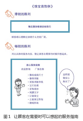 让顾客在需要时可以想起的服务指南 如果附加服务不够充分的话会影响商品的销量,比方说下列商品: ·需要进行加工的商品 ·必须有保养维护服务的商品 ·需要进行安装的商品 ·不易使用的商品 …… 有时零售店无法提供此类商品的附加服务。此时厂商需要提供相应的服务指南。 具体来说,厂商一般会使用POP广告,然而有些时候广告介绍不够充分就会导致顾客放弃购买。比方说,就算标明“○○敬请交给我们”,很多时候顾客也不知道应该把什么交给厂商。 如果厂商能够提供具体的服务内容,就能更加方便顾客理解。就算顾客当时并不需要此类服务,也会在心里留下一定的印象,当其需要的时候会回想起来。(图1)