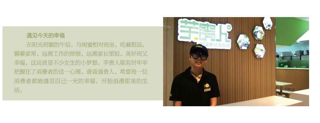 ·PART ONE 在最好的地段开店,做最健康的甜品! 芋贵人拿下浙江地区的总代理以后,于2012年4月份在杭州万象城开了第一家门店,9月1日,杭州大厦店正式开业。除了杭州,浙江的其他城市也纷纷有了芋贵人的身影,展店速度着实惊人。 选址杭州大厦,芋贵人杭州地区营运总监刘华解释说:“虽然杭州大厦是高端商场,租金昂贵,人流相对会少一些,但是从树立品牌的角度来看,杭州大厦是一个很好的选择。对于连锁门店来说,很多时候有些店的选址不仅仅是为了盈利,更是为了宣传。在客流方面,我们还是可以通过很多其他方式,吸引那些不是杭州大厦的消费群进店消费。”这和服饰连锁品牌ZARA的选址有异曲同工之妙。ZARA只选最好的地段开店,然后再把触角伸向较小的市镇,在不做任何广告的情况下让品牌影响力辐射全国。在纽约,ZARA选择的是第五大道;在巴黎,ZARA选择的是香榭丽舍大街;在上海,ZARA选择的是南京路。芋贵人也是想通过这种方式,逐渐把门店辐射到浙江的各级市镇。 芋贵人的营销方式中不得不提的是微博,各种微博营销活动,帮助芋贵人吸引了不少专门前去吃甜品的消费者。比如芋贵人官方微博曾经搞过一个活动,消费者转发微博就有机会免费试吃甜品,中奖人会收到中奖短信,凭手机短信即可去门店试吃,试吃后再去微博上晒一晒自己的试吃感受就可以了。通过这样的一个试吃活动,既是对消费者的回馈,也是对本品牌的推广。这个活动的反响很不错,吸引了不少消费者进门店。 芋贵人的又一营销特点——健康!满是绿色的装修是和健康的主题相呼应的,烧仙草有去火的功效,寒天是海藻里面提取出来的,有美容和减肥的效果,而门店的奶茶更是由鲜奶做成的,绝不使用奶精。芋贵人想要倡导一种健康的生活理念,为甚嚣尘上的城市生活添加一份宁静的绿和健康的甜。 ·PART TWO 忘记自己是个女生,记住自己是个店长! 芋贵人杭州大厦店的店长是一个80后女生,一身黑的中性装扮,羞涩的外表下藏着一颗豪爽的心。采访完刘华后,我们几次招呼她过来谈谈门店的经营和管理,她都不是很愿意,最后好不容易才说服了她。真正进入采访后才发现,她其实是一个绝不含糊绝、不扭捏的店长。 “50斤,甚至100斤的货物都要我们女生自己抗,店里就那么几个男生,如果抗东西都要他们来,那60、70箱左右的货物要搬到什么时候啊?肯定会影响门店的正常营业!所以我们门店的女生从来不把自己当女生,货物到了,二话不说就去搬,从没怨言。当然,我肯定会参与其中,而不是指使她们干活。” 褚彩霞的豪爽之气在搬重物这件事情上已略见一二。送外卖,这件在很多行业里都是由男生来干的粗活,在她的店里,很多女生都自告奋勇去做,接到外卖电话还很兴奋。 虽是豪爽,但是女生该有的细致和耐心褚彩霞一样都不缺。 上海门店提供原材料的支持,但是很多配料都是要经过门店员工再加工的。比如说,煮红豆汤要一个小时,时间不能有偏差;为顾客配置甜品时,红豆不能多一颗也不能少一颗;整个制作过程也要精准,不然都会影响口感……这些,褚彩霞都严格把关。 在食材的准备方面,“一般情况下,我们都是早上准备上午的材料,下午需要的材料下午会继续煮,很多东西放久了口感就不佳了。每次煮好的东西,我和师傅都要试吃,如果发现口感不对,就要重新煮。在内部流程的监管上,我们是非常严格的。出样品都要标上制作时间和制作名称,从后场拿到前场,每样东西,什么时间点出来的,多少时间以后不能再用的,都要有很明确的标准;每一样东西是由谁制作的我心里也都一清二楚,食品口感出了问题,直接责任到制作人。” 谈到选择甜品行业的原因,褚彩霞自诩为吃货,她爱吃甜品,如果有朋友介绍哪里有好吃的甜品,即使在杭州偏远地区,像三墩、城西这些离她比较远的地方她也会赶过去吃。所以2008年大学毕业以后,她就开始从事甜品行业。每个店长都是从最基层的工作开始做起的,所以学习制作甜品也是必不可少的工作内容。在学习制作的过程中,让褚彩霞最难忘的就是学习炒糖的过程,“现在都已经被熏成‘火眼金睛’了”,习惯了,我记得我刚开始学炒糖的时候,炒焦了的糖会有一股刺鼻的味道,然后就一边流眼泪,一边叫别人在旁边帮我擦眼泪,还不能停下来,那个心酸呀!”她回忆起自己学习炒糖的那段经历,还心有余悸。 杭城第一家芋贵人——万象城店开业之前,褚彩霞已经跟随公司去上海的总部学习了,一开始她只是一个店员,随着杭州大厦店的开业,因为她平时表现出色,有能力和责任心,再加上一段时间的工作,已经对业务有了一定的了解,被任命为杭州大厦店的店长。因为之前经历过万象城店的开业、经营,所以面对杭州大厦店的开业也就得心应手了。 杭州大厦店一共8个员工,两班倒,平日里员工之间的关系很融洽,褚彩霞对他们也不会很严,但是犯了错误就要有惩罚。在门店的日常管理中,褚彩霞觉得自己就是一个打杂的,哪里需要她,她就去哪里。不过,门店员工的自主性也是非常强的,因为杭州大厦的制度比较严格,她经常被叫去开会,但她只要指定一个人代替她行使店长的权利就行,其余的不需要太过担心。 新门店的开业宣传也是很重要的,除了配合公司的微博宣传方案,褚彩霞自己也经常会向总部提出一些宣传的想法,希望帮助新门店快速打开市场。派人去周边的写字楼发传单,方