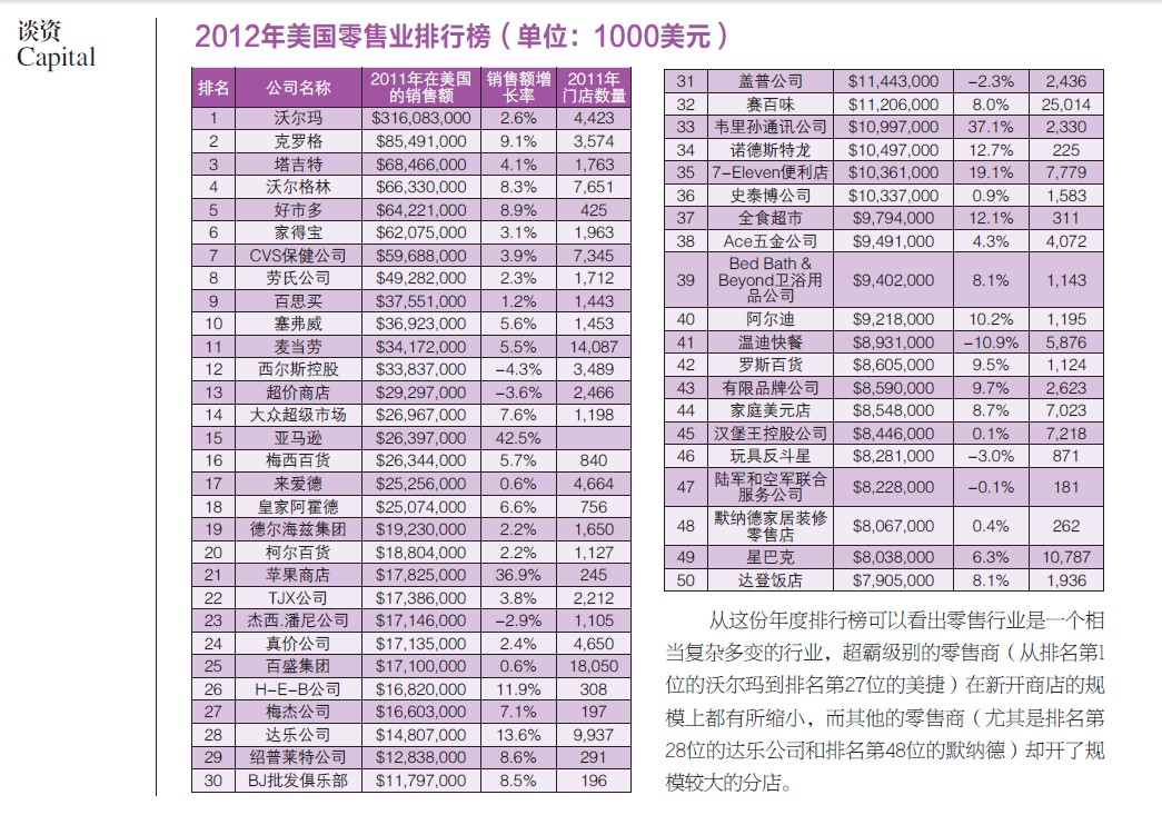 数语 10% 中国连锁经营协会会长郭戈平透露,受国内外经济增长放缓等因素影响,今年前三季度中国连锁零售企业销售同比增幅下降,连锁百强销售额平均增幅低于10%,低于社会消费品零售总额同比增速。郭戈平表示,零售的“慢增长”正是企业调整和变革的有利时机。 3316亿元 根据《2012年第3季度中国网上零售市场季度监测》数据显示,2012年第3季度中国网上零售市场交易规模达到3316亿元,环比增长18.7%,同比增长60%。其中B2C交易额1296亿,突破千亿。B2C的持续增长在进一步弱化C2C的市场份额。2012Q3中国B2C占网购规模的比重达39.1%,而上季度该比值为35%。C2C的下滑趋势进一步明晰。 1075.24亿元 据联商网统计,截止2012年11月9日,率先公布2012年度第三季度年报的40家零售企业中(不完全统计),总营收达1075.24亿元,平均增幅达5.57%。其中,23家零售企业业绩出现下滑;苏宁电器、上海友谊等零售企业销售额(营业收入/销售款项总额)超过100亿元。 11.8% 商务部公布,近期国内消费市场呈现稳中回升态势。据国统局统计,10月份,社会消费品零售总额实现18,934亿元人民币,同比增长14.5%,创近七个月以来的新高,已连续3个月逐月走高。1-10月累计实现社会消费品零售总额168,356亿元人民币,同比增长14.1%;扣除价格因素,实际增长11.8%,比上年同期加快0.6个百分点。 新店 10月24日:永辉重庆大足国梁店 10月25日:青岛永旺百丽广场店;嘉兴乐天玛特店 10月26日:漳州万达广场;百佳超市西城都荟分店;永辉超市碧湖万达广场 10月30日:麦当劳成都“得来速”汽车餐厅店 10月31日:华润万家万科城店 11月01日:沃尔玛永州东安店 11月03日:天虹龙华新区店 11月05日:大润发海城北关店 11月08日:沃尔玛鹤壁店 11月09日:维客超市沧口公园店;华联吴忠滨河广场店 11月10日:友好金盛百货乌鲁木齐新华南路店 11月14日:麦德龙顺德大良南国东路店 11月16日:物美天津丁字沽三号路与新德道交口店 11月17日:华润万家海口名门店 11月18日:杭州解百兰溪购物中心 11月20日:永辉超市贵安新天地店 形势 商务部启动六大措施解决蔬菜滞销问题 近期,山东、河南、浙江等地发生蔬菜卖难情况,商务部党组高度重视,紧急启动农产品卖难应对工作机制,采取了六项措施。一是迅速摸清情况;二是启动网上对接;三是开展社会救助;四是启动储备机制;五是筹备产销对接会;六是加强信息引导。 中国流通业发展尚需政策指导 商务部副部长姜增伟谈到,虽然中国流通业取得显著进步,但仍然存在不少薄弱环节和问题。对此中央政府十分重视。2012年8月,国务院下发了《关于深化流通体制改革加快流通产业发展的意见》,另外,国内贸易“十二五”规划也即将颁布。这两个文件对未来中国流通业的发展作出了指导,同时也提出了相应的政策措施。 餐厅人员须建食品安全培训档案 日前,国家食品药品监督管理局发出通知,要求各地建立行政区域内培训机构和餐饮服务食品安全管理人员培训考核档案,记录培训考核情况,并主动接受社会监督。通知强调,各地要进一步扩大培训覆盖面;利用食品药品监管系统培训考核资源和社会培训资源,规范培训内容和方式,确定考核机构。 我国食品标准清理明年年底前完成 卫生部公布的《食品标准清理工作方案》提出,到2013年底,完成对食用农产品质量安全标准、食品卫生标准、食品质量标准以及行业标准中强制执行内容的分析整理和评估工作,提出现行相关食品标准或技术指标继续有效、整合或废止的清理意见。各相关部门根据食品标准清理工作结果修订或废止相应标准,调整相应标准管理方式等。 |