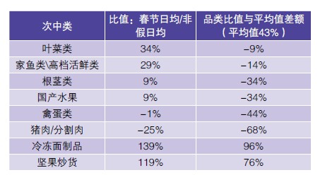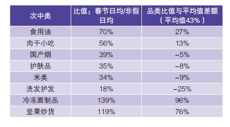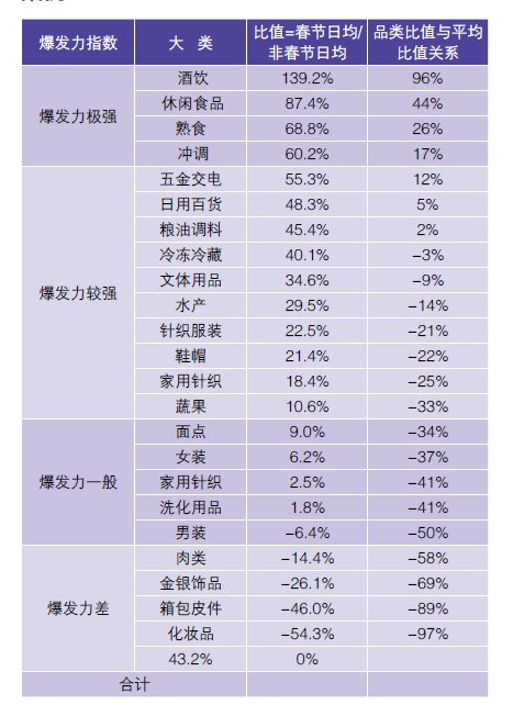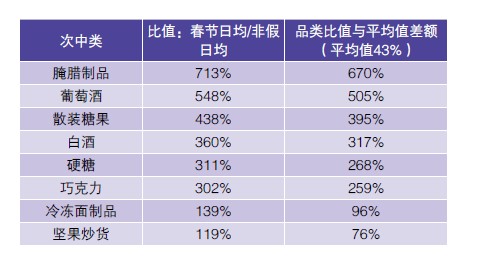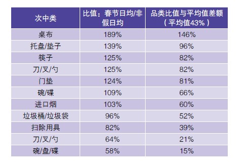 3、部分结构性品类春节期间表现突出,尤其应注重其带来的延展销售,不容忽视。