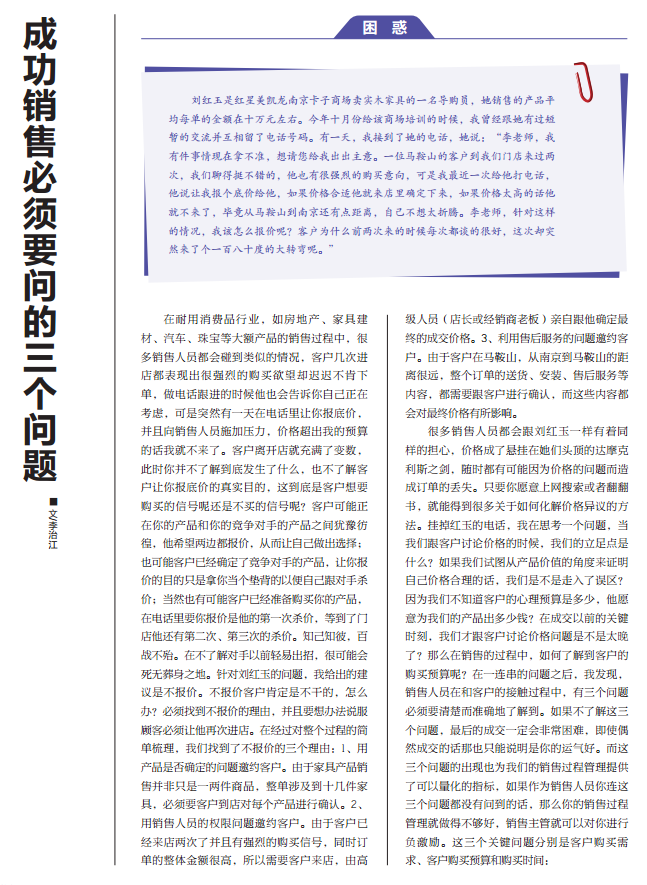 成功销售必须要问的三个问题