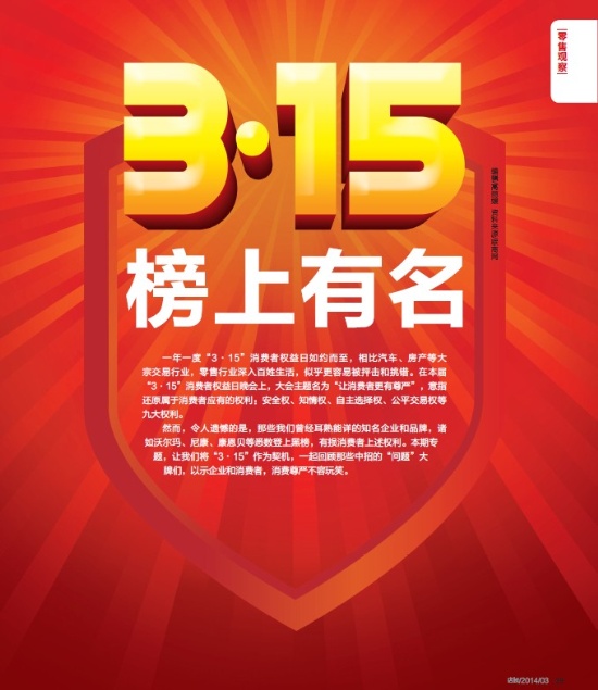 一年一度“3·15”消费者权益日如约而至,相比汽车、房产等大宗交易行业,零售行业深入百姓生活,似乎更容易被抨击和挑错。在本届“3·15”消费者权益日晚会上,大会主题名为“让消费者更有尊严”,意指还原属于消费者应有的权利:安全权、知情权、自主选择权、公平交易权等九大权利。 然而,令人遗憾的是,那些我们曾今耳熟能详的知名企业和品牌,诸如沃尔玛、尼康、康恩贝等悉数登上黑榜,有损消费者上述权利。本期专题,让我们将“3·15”作为契机,一起回顾那些中招的“问题”大牌们,以示企业和消费者,消费尊严不容玩笑。