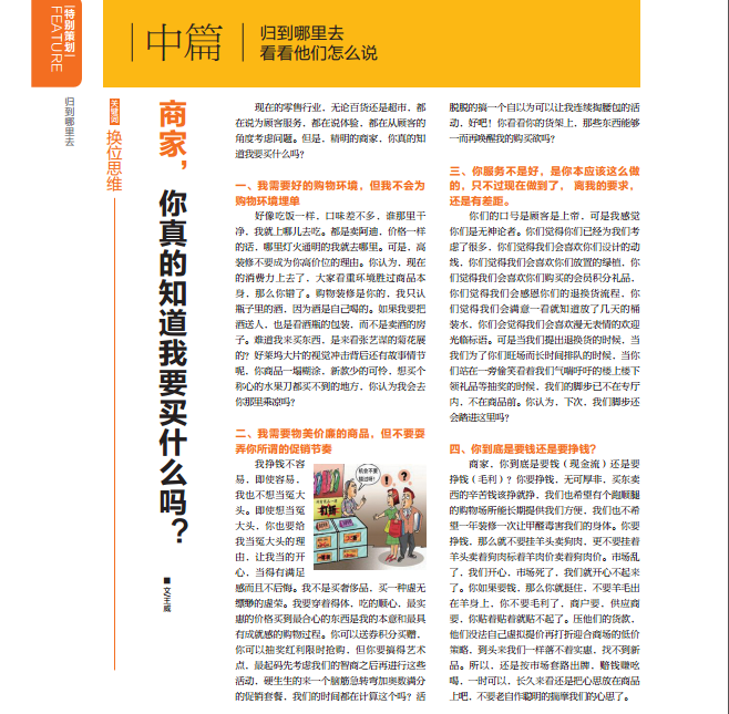 现在的零售行业,无论百货还是超市,都在说为顾客服务,都在说体验,都在从顾客的角度考虑问题,但是,精明的商家,你真的知道我要买什么吗?