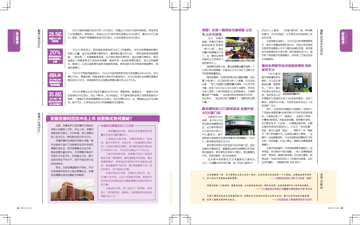 数语: 28.5亿 阿里2013年净利润 20% 便民连锁成为拉动零售核心力量 4564.4亿 2014年Q1中国网络购物市场交易规模4564.4亿元 35.8亿 2014年一季度沃尔玛净利35.8亿美元