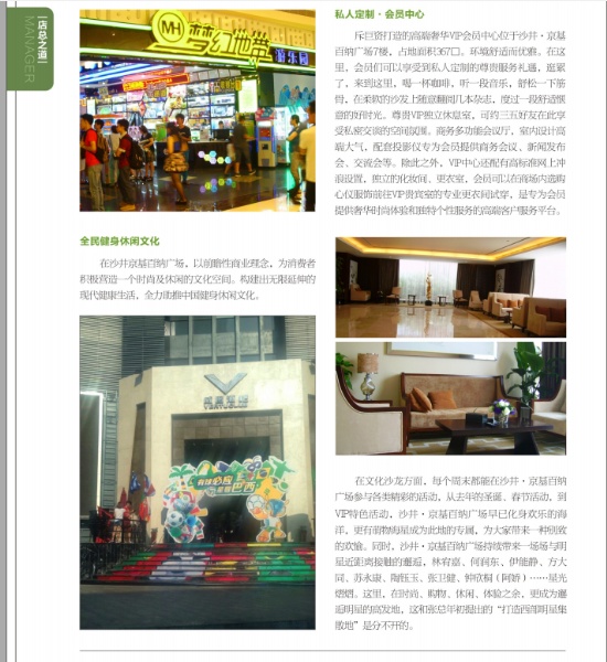 私人定制·会员中心 斥巨资打造的高端奢华VIP会员中心位于沙井·京基百纳广场7楼,占地面积367㎡。环境舒适而优雅。在这里,会员们可以享受到私人定制的尊贵服务礼遇,逛累了,来到这里,喝一杯咖啡,听一段音乐,舒松一下筋骨,在柔软的沙发上随意翻阅几本杂志,度过一段舒适惬意的好时光。尊贵VIP独立休息室,可约三五好友在此享受私密交谈的空间氛围。商务多功能会议厅,室内设计高端大气,配套投影仪专为会员提供商务会议、新闻发布会、交流会等。除此之外,VIP中心还配有高标准网上冲浪设置,独立的化妆间、更衣室,会员可以在商场内选购心仪服饰前往VIP贵宾室的专业更衣间试穿,是专为会员提供奢华时尚体验和独特个性服务的高端客户服务平台。 在文化沙龙方面,每个周末都能在沙井·京基百纳广场参与各类精彩的活动,从去年的圣诞、春节活动,到VIP特色活动,沙井·京基百纳广场早已化身欢乐的海洋,更有萌物海星成为此地的专属,为大家带来一种别致的欢愉。同时,沙井·京基百纳广场持续带来一场场与明星近距离接触的邂逅,林宥嘉、何润东、翁虹、伊能静、方大同、苏永康、陶钰玉、张卫健、钟欣潼(阿娇)……星光熠熠。这里,在时尚、购物、休闲、体验之余,更成为邂逅明星的高发地,这和张总年初提出的“打造西部明星集散地”是分不开的。