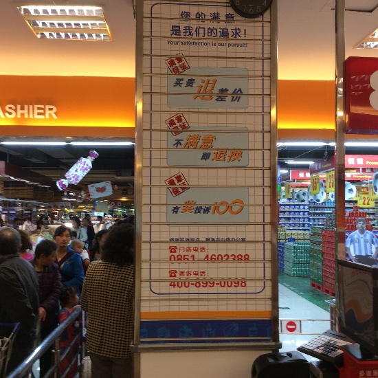 这不是《店长》杂志第一次报道贵州的合力超市白云店,这家地处大西南内陆地区的优秀门店,早在2013年的6月刊上就给我们狠狠秀了一把他们生鲜经营的独到之处。 当笔者亲自站在白云店的收银台进出口处时,最直观的震撼感受是墙上贴着的“吃过、用过、穿过的商品可以退换吗?在合力您可以退换!”“买贵退差价、不满意即退换、有奖投诉100”。 不少普通卖场、超市生怕顾客退换率太高,导致损管控制难,因此在退换货方面都仅仅做些表面功夫,但是白云店不一样,他们把这样的标语贴满了所有醒目的地方,生怕顾客看不到。店长李志坚不无自豪地说,在白云店,如果顾客要求退换货,店方不问理由,直接同意退换,不会给顾客造成人为的退换困难。 “服务顾客,让顾客满意。”对李志坚来说,这就是他追求的零售真谛,是白云店不断调整的根本目的所在。正是他对顾客的一片赤诚之心,顾客也回报给他一个辉煌的业绩。这家营业面积约4000平米的超市,在他上任之后,就实现23.5%的年增长比,销售额高达1.87亿元;平均客单价从原来的40元,增长为62元;日均客流量增长7%;人效、坪效都得到显著提高。 目前,白云店是合力超市体系内的年销售冠军。不过李志坚目前还不是很满意这个业绩,他还在不断调整门店内的规范化运营,加强员工服务意识,强化商品结构,希望能够达到中国IGA组织五星级评分标准(目前白云店的IGA评分是三星级,其中顾客服务项达到满分)。 (图:醒目的退换货提示) 设计时图片处理一下,只截取精华部分即可