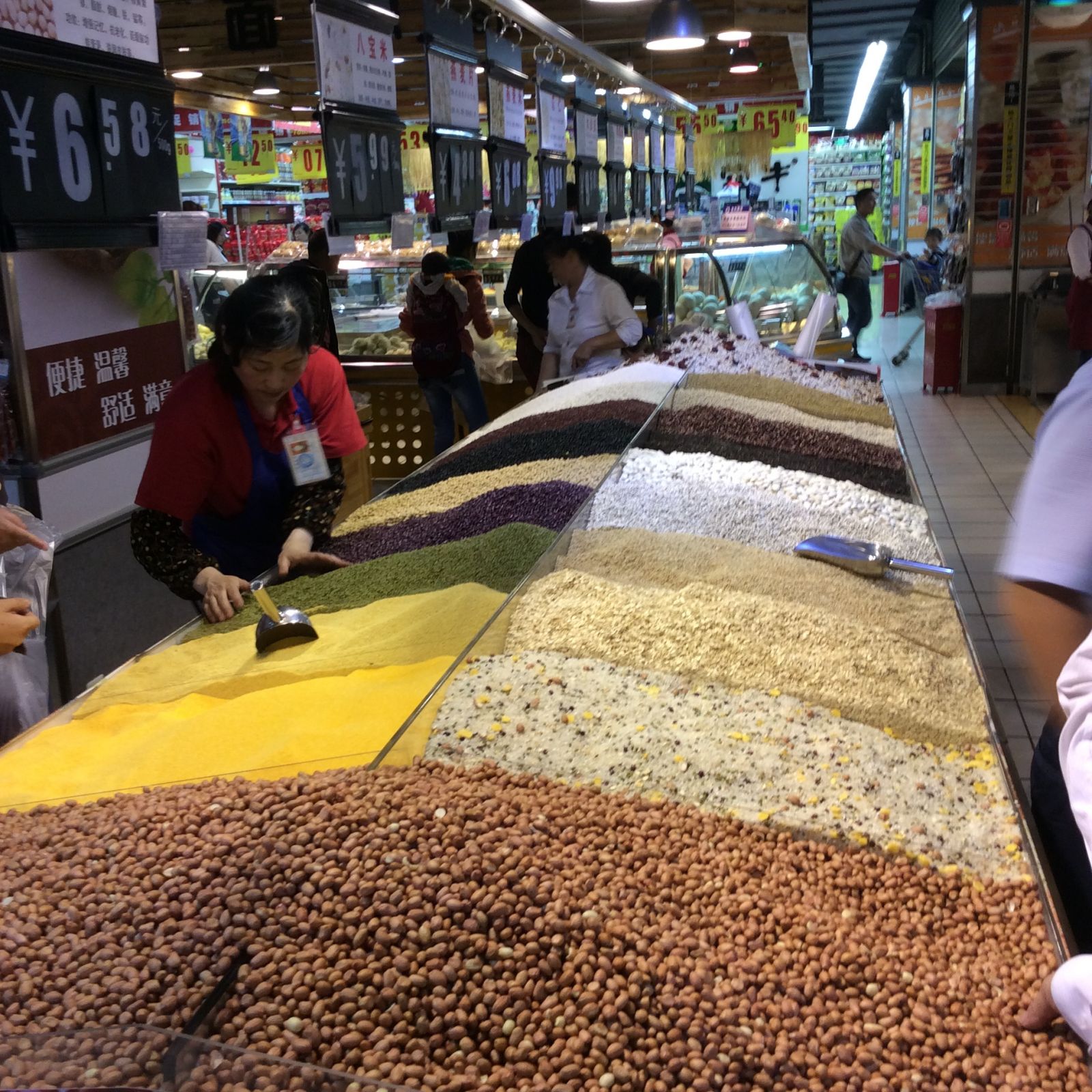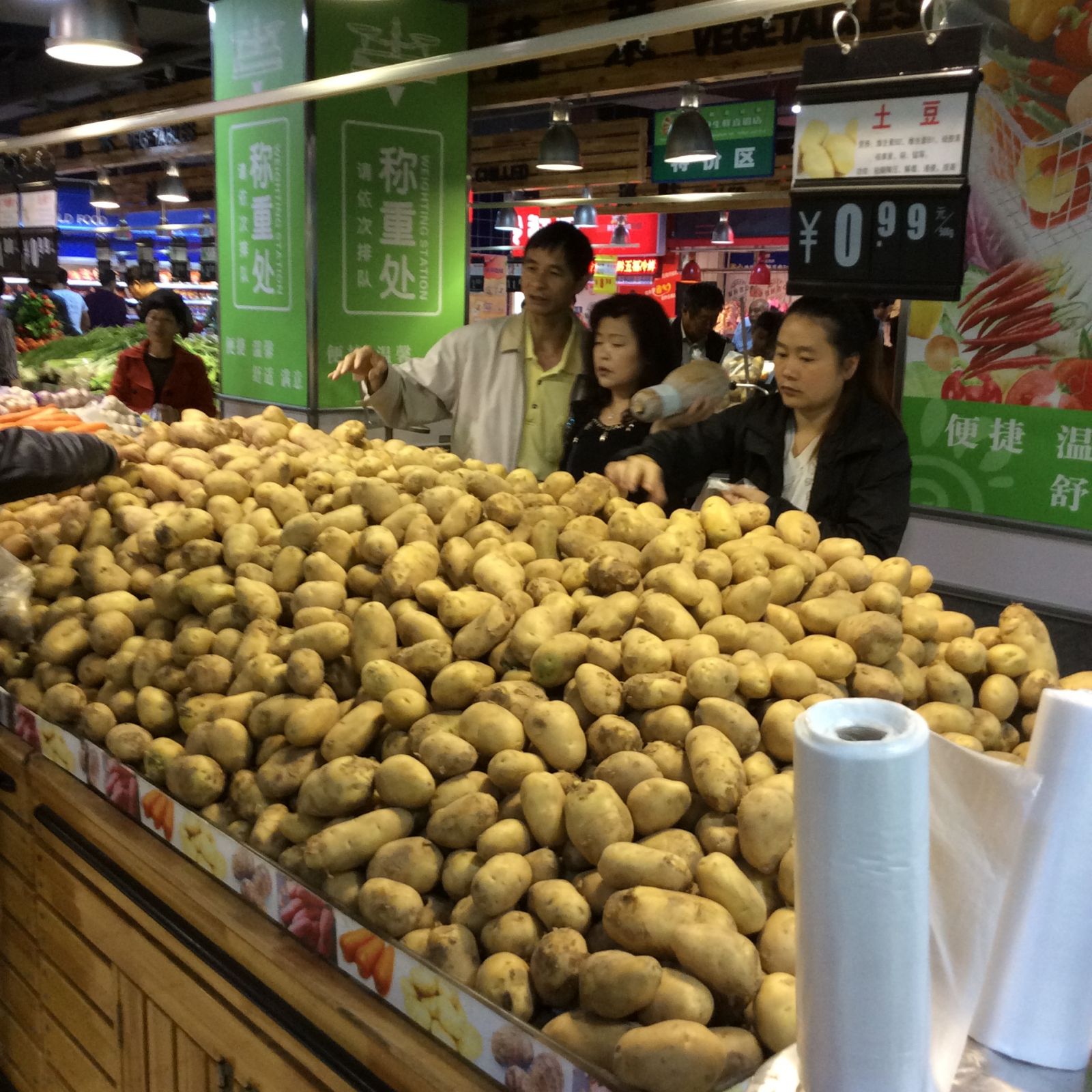 地处西南云贵高原的白云店 关于门店经营,有人说,第一是选址、第二是选址、第三还是选址。白云店地处中国西南版块,天生基因方面,与东南沿海城市以及其他一二线城市的优秀门店没有可比性。但正是因为这样,才能显现出其以4000平米营业面积缔造1.87亿销售额的难能可贵之处。 贵阳这个城市,是中国历史上最古老的不夜城,由于地处内陆,交通不便,物流成本高昂,零售业的发展严重受阻。另一方面,该地消费模式畸形,堪称“好吃懒做”之典范,人均收入水平低于其他一二线城市,但消费水平却与北上广深等城市相仿,餐饮业林立,各色小吃层见不穷,而其他加工业、重工业的发展则低于其他地域的城市。另外,贵州的教育无法满足当地企业对高级人才的需求,许多高级人才都需要外聘,但此地的收入水平以及地理位置也限制了部分人才的引入。在这里想打造一家优质的超市,困难之大可以想象。 不过这里也有其竞争优势,首先是当地网店配送难,互联网消费的冲击相对较小;其次是外来人口少,消费相对稳定。 白云店所在的贵阳市白云区,属于城乡结合部,以工业区为主,是贵州省人均生产总值第一名,人均收入水平相对较高,被誉为“贵阳的浦东新区”。白云店地处白云区辖区中心,是该地地标建筑,辐射商圈内有居民15万,消费者以工人家庭、厂区采购为主,可产生日均7000多的客流量,高峰期可突破12000人次,这给白云店的成功打下坚实的基础。 在白云区约有30余家大中小各型超市、卖场,贵阳当地主要竞争对手有永辉、绿谷、乐万家等品牌,但从地理位置、商品结构、顾客信赖度等方面而言,合力超市白云店的优势相当明显。 白云店始建于2006年9月,业态定位是生鲜综合型卖场,以生鲜为主营产品,于2009年开始尝试自营,现今经营的64大类、18000单品中有90%以上系白云店自营。 (图:因为家庭成员以工人为主,周边又有不少厂区市场采购,所以这里的居民买菜时都是大量采购,一麻袋、一麻袋往外买。白云店每日销售出去的蔬菜达60吨以上) 白云店以生鲜为主营产品,因此每天有四次高峰期,分别是7:00-8:00;10:00-11:00;16:00-17:00;19:00-21:00(如果有误,请审稿帮忙修改下),笔者参观白云店时是星期五上午10时左右,人流量相当可观。