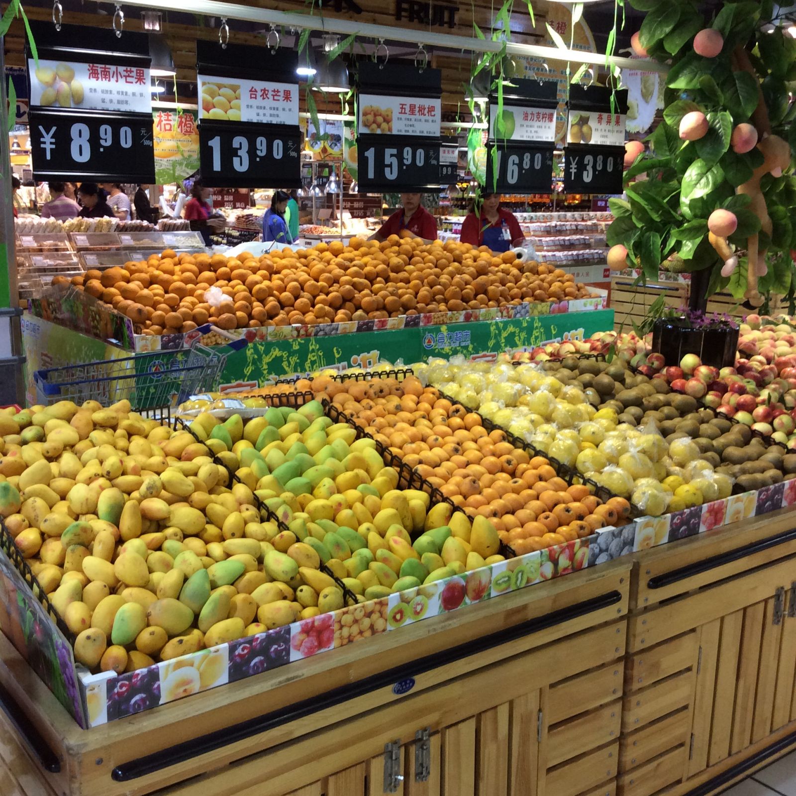 90%以上自营的生鲜综合型卖场 白云店以生鲜为主营项目,占总销售比的38%,整体生鲜毛利可达16.8%,其中叶菜(蔬菜)毛利有20%。优秀的生鲜经营给白云店带来无与伦比的人气。 白云店最早采用的也是联营模式,但是发现当地的经销品牌一方面在品牌数量上无法满足超市需求,另一方面品牌的质量也缺乏优质品牌,而且利润低,难管理,于是在09年起改为自营。 现在,合力超市拥有一个优秀的采购团队,以生鲜采购事业部为例,所有合力超市的门店生鲜均来自他们的手笔,他们需要到生产基地进行选品和订货,如果生产基地无法满足的情况下,他们还需要到批发市场去进货。为保证自采品类的优秀,公司会给他们制定销售目标,2014年的生鲜品类销售目标为8个亿,另外还有内控部对买手和商品进行监督,每月进行固定的盘点查检。 (图:当地人爱吃土豆,这些原产地来自河北的每天都要卖出去5、6吨,整体生鲜日均吞吐量达到50吨以上。) (图:花菜3.5元/斤。由于生鲜均为自采自营,价格方面比周边一些菜市场还便宜,非常具有竞争力。尤其是花菜的上架还需要去叶、去梗,损耗率比普通生鲜要大许多。) 目前白云店的生鲜损耗率控制在10.5%左右。 (图:白云店生鲜的陈列也很考究,来自五湖四海的管理层的优势就在于能够迅速借鉴各地优秀门店的零售模式。) (图:在LED板上可以看到鲜兔以及其他山珍肉品的特价销售,地处云贵高原的白云店会售卖一些合乎当地餐饮习俗的土特产,深受当地人的喜爱。) (图:合力超市的价签,上架时间、包装日期、保质日期、单价、售价一目了然。所有鲜品基本都是日产日销,所有上架商品都能在当天售完,这是数年经验的积累。) (图:白云店的水产非常丰富,大多属于贵州当地稀缺的产品,例如基围虾,就是从汕头直接空运过来的。他们会根据季节、节假日预估销量,然后提早数天向原产地供应商下订单。在水产的养殖方面,他们投入大量设备以及技术,所以这里的生物们都非常地鲜活。) (图:瓜果的品类也很齐全,陈列得很丰满,笔者去白云店的时间还不到西瓜销售旺季,不过这里已经有这种精品麒麟瓜在销售了。) (图:这是谷类的陈列,五颜六色看起来很有质感,里面的杂粮都是超市人员自己拌的。) (图:精品大米和普通谷类是分区域陈列的,这是白云店新引进的蟹田米,7.99元/斤,促销价是5.99元,比泰国香米还高一个档次。超市还为新品促销做了个“看世界杯,品蟹田米”的活动,买米还送个亚克力杯,现场有新米的试吃活动。) (图:这是世界杯的促销陈列,还有赛事进程表。最后一张图的小瓶装哈尔滨啤酒在世界杯赛事期间的销量非常高。值得一提是那个货架,李志坚在加入白云店后对所有货架和设备都进行了更换,并请了新的保洁公司,总耗资300余万元,使整个超市的规格提高了一个档次。)