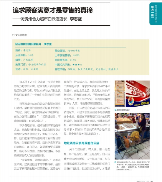 | 追求顾客满意才是零售的真谛 ——访贵州合力超市白云店店长 李志坚 | ||||||