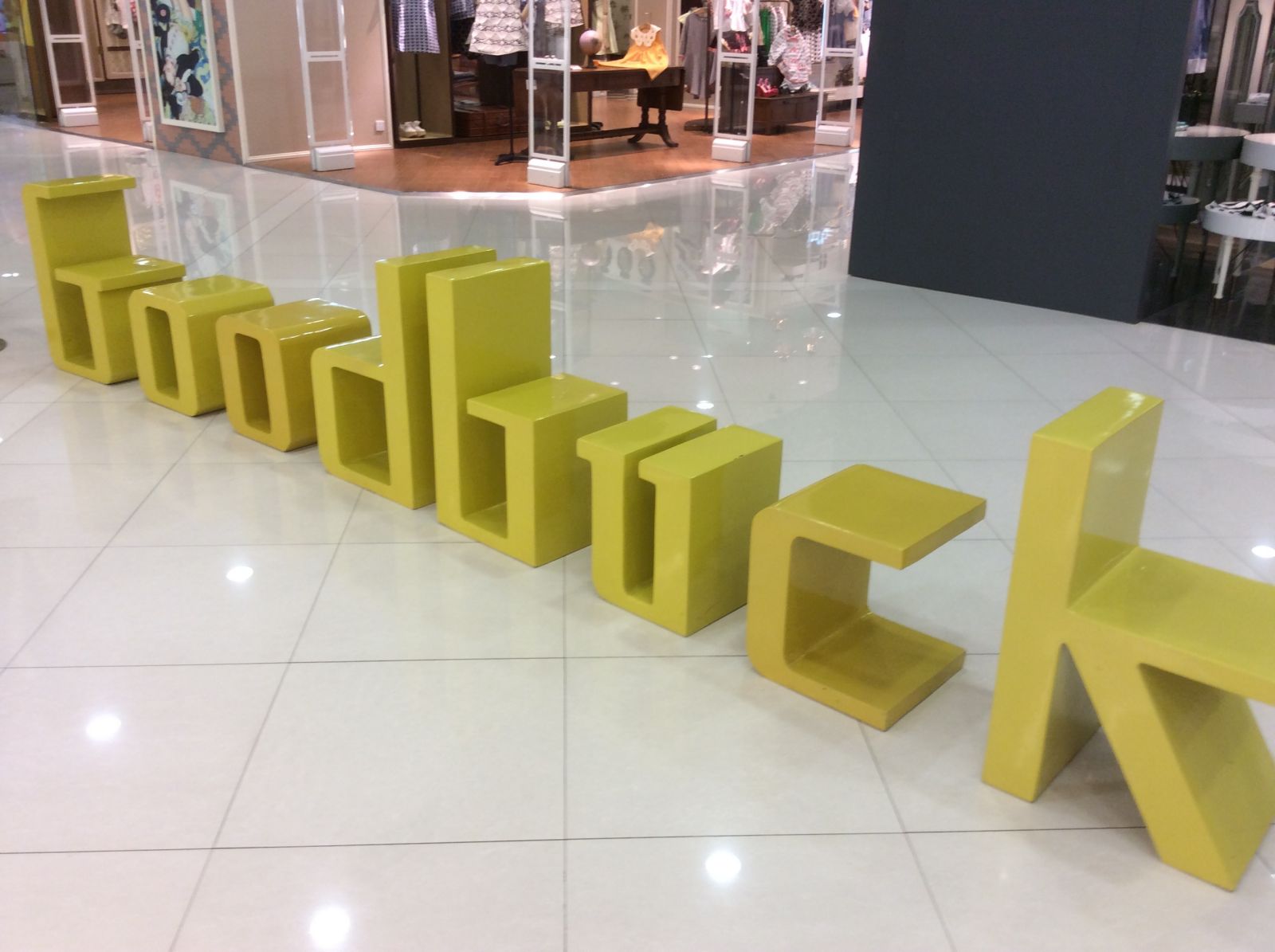 图:这是给顾客休息时坐的凳子,可以自己摆出喜欢的英文字母。
