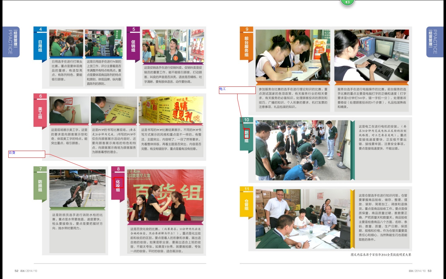 一名熟练的门店员工能给门店经营带来巨大的效益,技能的掌握熟练度决定了员工是否称职。本文与您分享来自百佳华全员技能明星大赛上优秀选手们的一些技能技巧,通过本文还能学习到一些关于如何组织员工技能比赛的相关知识。 本次大赛分为生鲜、食品、日用、百货、促销、收银、防损、电工、仓管、美工、司机、文员、统计和前台接待等十四个比赛组,本文节选了部分赛组的精彩内容,并对比赛要求及获胜技巧、要点、重点进行点评。 技能赛内容一览表