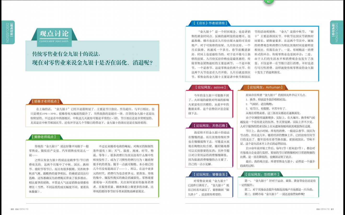 观点讨论: 传统零售业有金九银十的说法,现在对零售业来说金九银十是否在弱化、消退呢? ——《店长》杂志