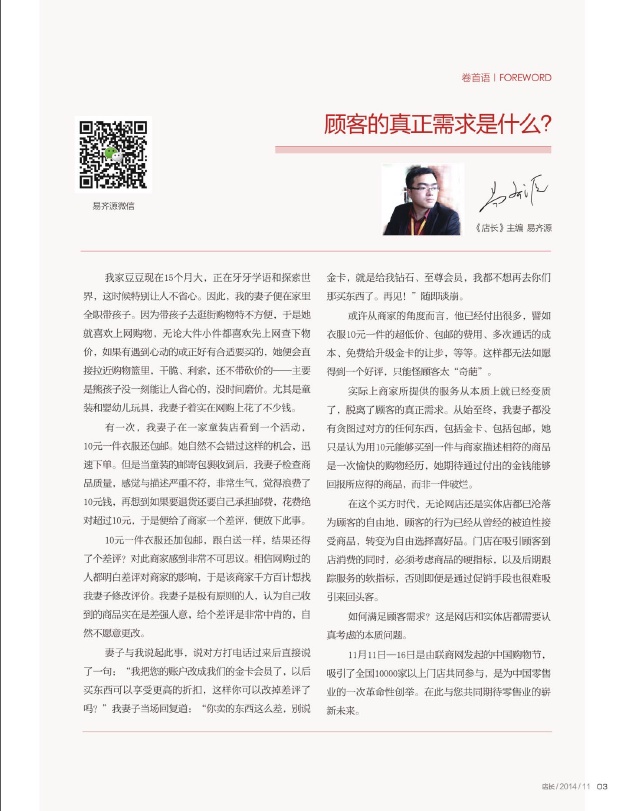 | 作者:文/易齐源;出处:《店长》2014年11月号 总第34期 | ||||||