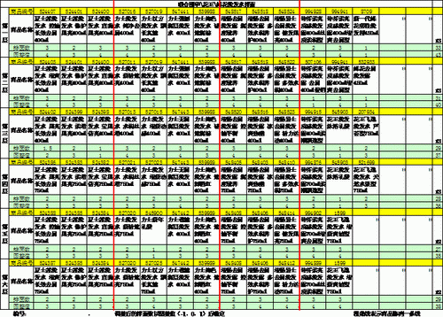 在设计表格时,还应考虑以下几点因素。 1. 一张表格以对应一节货架为宜。以一节货架为单位,对一节货架一层最多商品陈列品种数进行实际考察,进而确定表格的列数。上图表是15个商品。 2. 一张表格以对应一张A4纸横向打印为宜,字体不能太小。 3. 为便于操作,在表格中还应备有部门详细的商品列表。