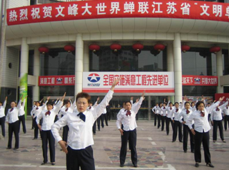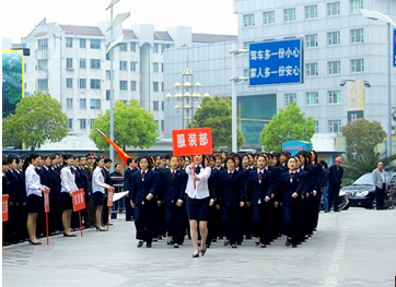 400名文峰员工组成的10个方阵,彩旗队,店旗队,国旗队齐刷刷地喊着企业口号,几十米长的队伍由警车开道浩浩荡荡地行进于启东市的主干道路上。