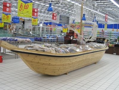 三、开业策划分段介绍 前期(6月1日—8月30日) 在前期宣传阶段主要以软广告宣传为主,主要形式为条幅、新闻报道、新闻发布会、招商会议、人事招聘发布等。 巨幅、条幅(内容): 众志成城、抗击非典 来自美国的超市品牌 山姆士大世界正式起航 6月份开始招商行动 招商电话:88733363 联系人: 招商地址:鹿城路88号(山姆士大世界筹备处) 人才招聘: 渠道:《钱江晚报》、《温州晚报》、《温州都市报》、《联商网》等 时间:6月10日 内容:1.《来自美国的超市品牌——山姆士进入温州》 2.《山姆士大世界正式起航》 3.人才招聘 招商会议: 在《浙江日报》、《温州日报》、《温州商报》上刊登招商会议的通告,公司印制一批招商手册(3000份)在招商会议上用。在温州四星级酒店(大将军)租订一个可容纳1000人的大型会议厅作招商会议用。采购部邀请各路商品供应商;办公室邀请各路媒体记者参加,并将招商会议的内容公布出去。 前期费用:25万 卖场装修期,该图为特色龙舟状陈列物 中期(9月1日—12月10日)