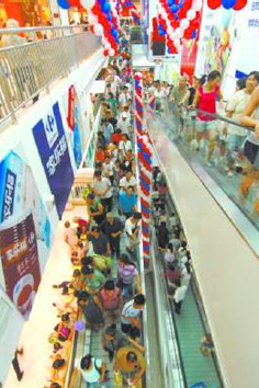 天津某大型商场一面福娃运动造型奥运墙亮相 杭州庆春路购书中心疯狂打折 8月24日,杭州庆春路购书中心店庆10周年之际,为答谢读者书店将通宵营业,并引进商场分时打折的手段,最低折扣为7折,这将是杭州的新华书店从未有过的低折扣。