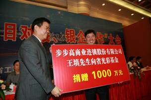 在湖南省万企联村“项目对接、银企合作”大会上,步步高商业连锁股份有限公司董事长王填,以1000万元的巨额捐献,刷新了湖南慈善捐助历史上的纪录。据悉,这是湖南省光彩基金成立后收到的单笔数额最大的捐款,也是湖南民营企业家单笔数额最大的捐款。 台湾一内衣连锁公司400名女员工穿内衣上班