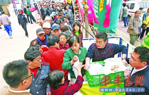 青岛一家电卖场开业免费送鸡蛋1200斤
