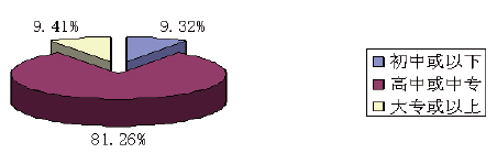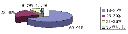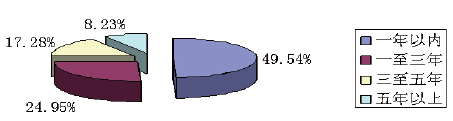 三、销售从业经验年限分布情况  上述三项的分布情况能说明店员大多是高中或中专学历,年龄在25岁以下,店面销售经历在三年内。