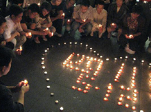 ![]() 5.12,一个触目惊心的日子…… 大地震颤,多少人失去了生命;多少人失去了自己的亲人;多少人流离无所。 仰望星空,老天爷,你为何如此狠心……你是否看见那满目苍桑的老人,为自己掩埋在废墟之中的孩儿而流泪满面;你是否看见那原本坚强万分的丈夫为躺在自己面前的妻子失声痛苦;你是否看见那柔弱的孩子,在失去自己生命的那一刻,手中还紧紧纂着自己深爱的那支笔。 也许,我们是幸福的,幸福在于我们还拥有自己的生命。同时,我们也是痛哭的,因为我们失去了那么多的兄弟姐妹。 5.20,地震过去的第8天,我和我那些充满血性的朋友们,虽然我们到不了救灾现场,但我们的心是在一起的。在银泰杭州武林店的广场上,为我们四川的兄弟姐妹们燃烛祈福,愿他们早日度过这次灾难。 看着闪动的烛光,心中暗暗感到一阵酸楚。那些被压在废墟下面的亲人们,你们加油;那些不顾危险,怀着满腔热血奋战在救灾第一线的解放军指战员们,你们加油;那些被地震夺去的生命,希望你们在天堂过得安好,请记住一句话“因为我们的心,永远在一起。” |