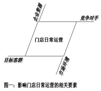 门店日常的运营主要受内外环境二个方面的影响,其中内部环境主要是企业资源,外部环境包括市场环境、竞争对手、目标客群等,店长在日常运营过程中,如果能把握这内外四个方面的环境时时进行跟踪总结、学习提升,则门店的的运作必然将处于一种开放式、螺旋式的可持续提升状态,结合这四个方面对门店运营影响的具体要素不同,我们认为比较有价值的影响要素包括: