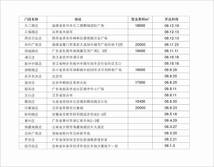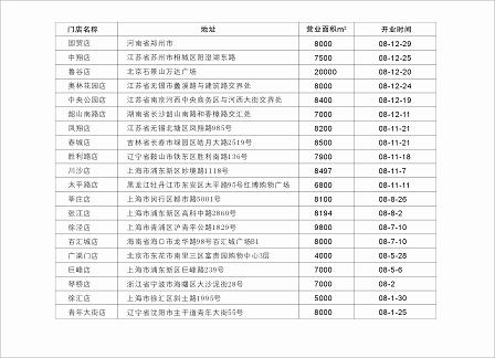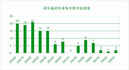 2008,家乐福在中国大陆的新开门店 截至08年12月31日,家乐福在中国大陆,08年新开门店20家,累计门店数为129家。