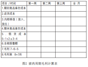 剩余大量棒子骨意味着毛利较多体现在本期(已体现在销售额中),剩余后肘肉意味着毛利将较多体现在下个周期(本期销售额中并未体现这部分毛利)。回过头来再看毛利计算公式,你会发现盘点时无论剩余哪个部位,毛利额计算出来都是准确的。此处需要顿悟。猪肉周期毛利计算表详见(图2)。