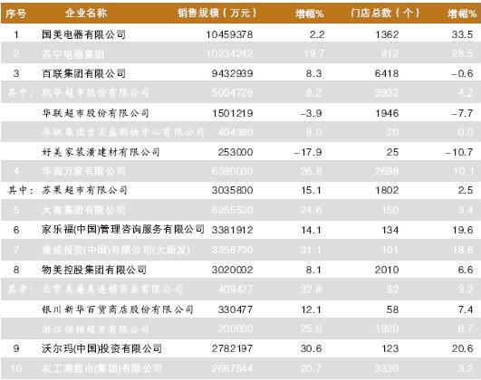 完整名单详见联商网:http://www.linkshop.com.cn/web/archives/2009/109531.shtml
