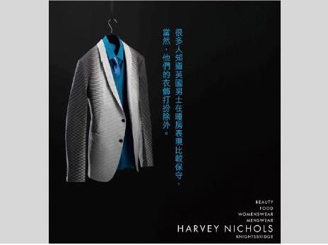 英国百货推创新广告 中国顾客上升84% 英国销售奢侈品时装的老牌百货公司Harvey Nichols推出了针对来伦敦旅游购物的顾客们的广告。据销售额数据统计,其中中国顾客上升了84%。 Harvey Nichols这次拍摄的广告展现出英国人的典型形象和个性,以吸引海外游客的惠顾。广告词包括,阿拉伯文的“英国人以坏牙齿出名,这也是为什么他们需要更多漂亮的鞋子”,中文的“很多人知道英国男士在睡房表现比较保守,当然,他们的衣饰打扮除外”,还有“英国人以喜欢排队著称,直到我们店内的新品上市”等,这些广告被登在出租车广告上以及旅游杂志上。