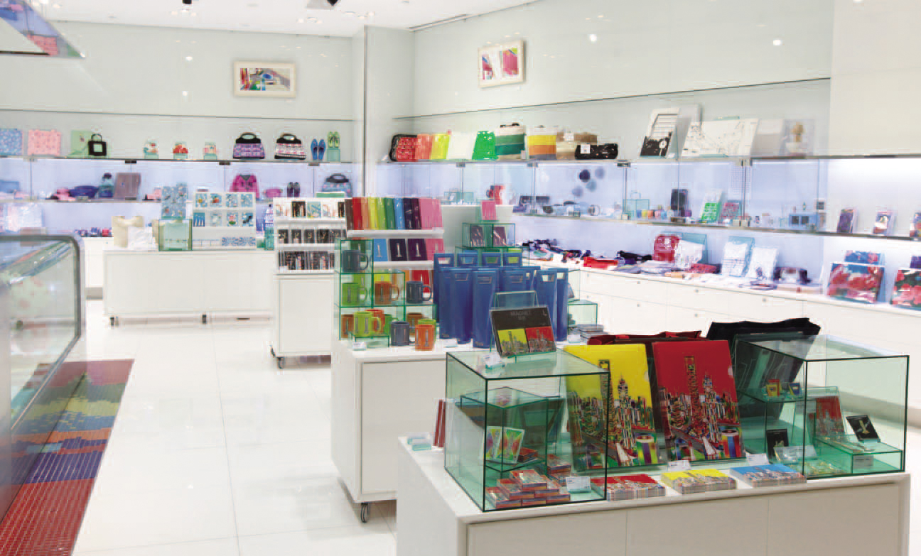位于上海浦东环球金融中心3 楼的A R T & D E S I G NSTORE,09年7月28日刚刚开业,总部在日本东京,目前在中国仅有上海一家门店。店铺经营思路沿用了日本森美术馆(Mori art museum)旗下艺术品商店的经营理念,以展示当代艺术以及与生活相关的设计产品为切入点,主要销售日本及世界其他当代艺术家开发设计的原创作品。 由于店铺产品汇集了众多当代艺术家的创意,店铺位置又座落于目前世界最高观光设施环球金融中心大楼内,ART&DESIGN STORE已成为全新沪上创意设计新焦点。“我们店的经营模式在国内尚属首家,许多客人就是为了看独特的设计才到我们这里来的。”店铺管理人王萌小姐说。 店铺隔壁5米处,是一间挂着约10幅画左右的小型艺术空间,画作更新与店铺新品更新同步。指着入口处第一幅以环球金融中心为背景的画作,王小姐介绍说:“这幅画是在我们的整个大楼刚刚竣工时,一个日本的四人艺术家组合Enlightenment专门为我们创作的。以这幅画为起点,我们开始了与不同艺术家的合作。我们希望我们的艺术品商店与别人的不同,在这里客人不但买到产品,还能知道该产品的艺术灵感来源于哪里。” 柜台上摆放的文件夹、明信片、钥匙圈等纪念品似乎并不复杂,却都是与各国艺术家合作的原创产品。除纪念品外还有从日本引进的艺术衍生品和设计产品,多数为买断经营。“我们会尽量选择‘only one ’的产品。此外,还会不断引进一些新的设计人,帮助设计师们将设计出来的作品商业模式化并进行销售,同时也希望优秀的设计师们能通过我们的平台找到好的销售渠道。” “除3楼外,我们在环球金融中心94楼观光厅还设有纪念品专柜,主要销售与环球金融中心相关的纪念商品。在2010上海世博会来临之际,也在专柜相应增添了一些世博纪念商品以满足中外游客的需求。由于金融中心的观光区(需要门票)与商场和餐饮区(免费)分开,所以3楼店铺与94楼纪念品专柜的客源也不相同。94楼仅为环球金融中心观光客,而3楼店铺除了部分观光客,还有上海市民和其他普通游客。”王小姐表示,店铺中50%以上的顾客为中国人,其它各个国家顾客兼而有之。在顾客有了解商品背后的设计师或艺术作品的需求时,店铺导购会进行相应讲解。