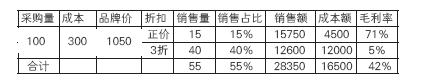 表一:盈亏情况测算 需要说明的一点是,以上的计算中,商品是正价销售。如果商品是打折销售,还需要将折扣并入到商品成本中,进行计算。