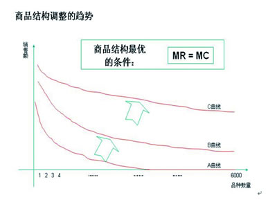 MR:边际收益,即门店新增的最后一个商品所带来的销售额。 大多数的门店在商品结构调整之初都会显现如图中所示的A曲线,畅销商品只占门店陈列商品的一部分,而大部分是一个月内根本不动销或者只是销售一两件的商品,这些商品常常会占到商品品种总数的40%-50%,销售额呈现如A曲线所显示的状态;当我们按照商品结构调整的充要条件进行调整时,也就是推动销售A曲线向着销售B曲线推进时,门店的商品结构也就得到了明显的改善;而当门店的商品结构沿着曲线A到曲线B再到最佳状态C曲线的时候,门店的商品结构也就达到了相对理想状态。 门店的商品之间有三种关系:一是互补商品,也是关联性最强的商品,像面包与牛奶、牙膏与牙刷、饮料与休闲食品等就属于互补性比较强的商品;二是替代商品,虽然它们之间的关联性也很强,但属于负关联,也就是说这些商品之间,一种商品的销售增加往往是以另一种商品的销售减少为代价的,比如统一冰红茶与康师傅红茶饮料之间就属于很强的替代关系;三是基本不相干商品,不过虽然这些商品相互之间的关联性不强,但是就顾客的“购物篮”而言,却是必不可少的。 在商品的品类层面宏观考虑好商品结构以后,需要对单品销售额低的品类进行压缩,而单品销售额高的品类则予以扩军,而且在扩军的过程中尽可能地丰富商品的子品类和小类,使得商品结构丰满而不臃肿。( 商品丰满是指商品有“骨感”,内在小品类和子品类比较丰富;而商品臃肿则指子品类少,而在某一子品类的SKU数却很多。) 当商品的大类和小类得到较好的平衡后,我们还须关注品类内部的功能、规格、品牌、价格带、新老品、本地商品与全国商品、国内商品与国外商品之间的平衡,做到尽可能地统筹兼顾。 当然,要设计和调整好商品结构,首要的还是要把顾客放在第一位,顾客的需求变化是门店调整商品结构的风向标。 |
