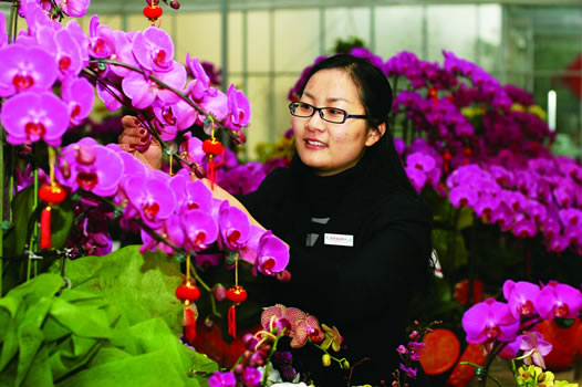 传化花园中心 总经理 魏建芳 小魏是萧山本地人,春节长假里有6天都在卖场工作。“春节期间顾客特别多,要安排6个导购和20几个其它岗位的工作人员,卖场里每天都有约30人在工作,很多人春节长假都工作了6到7天。” 由于卖场同时也是暖房,需随时控制温度湿度,所以卖场里全天24小时都是有人的。晚上8点半关门后,还要安排员工轮流值班。“一般晚上的值班工作会安排男生,空调和湿度器靠暖房墙壁摆着,值班人员每小时要记录一次暖房的温湿度,然后在值班表上做记录。” 和其他超市的店长相似,在这家以超市模式运营的“花园中心”里,小魏每天的工作也是从早会开始。每天早晨给员工们安排好各自工作后,她就会去各个部门帮忙,有时是帮组盆组打样,有时是帮理货组做陈列,有时是帮导购组招待顾客,或者在卖场里各处转转,修剪枝叶。 问到卖不掉的花如何处理?她说:“开到饱和状态的花,我们会开展一些促销活动,过了花期还未销售出去的花,由养护人员修剪后搬回基地总花房重新培育,等到明年再开花时再搬出来卖。这是我们的优势,由于公司有强大的培育基地做后盾,我们的花卉不存在库存问题。” |