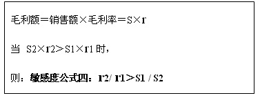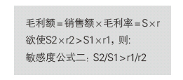 这是商品售价调高的临界区,如果继续调高价格,使得销售额下降幅度高于毛利率上升幅度,即r2/ r1 <S1 / S2时,则会出现R4状态。 R4:价格提高了,销量下降了,销售额下降了,毛利额也下降了。