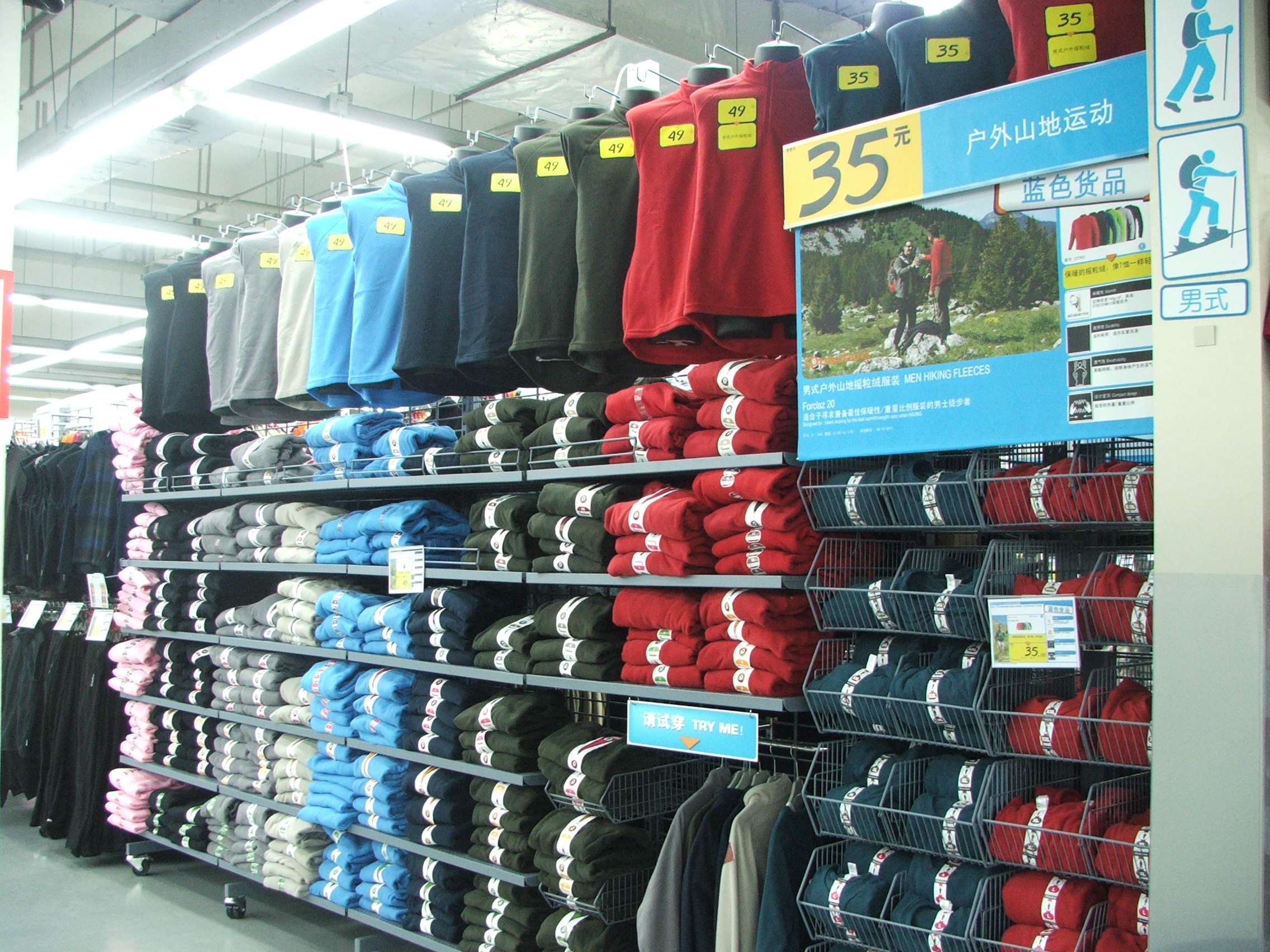 迪卡侬(Decathlon,在法语里是田径运动中十项全能的意思)是来自法国的专业运动用品公司,兼做研发、设计、生产、物流和销售,目前在全球15个国家拥有500多家零售商场。1992年进入中国,2003年11月在上海浦东开出第一家概念店,截至2010年9月,其在中国的门店数量达到25家。 上海浦东花木店为迪卡侬旗舰店,经营面积近4500平米,地上两层。漫步店内,它平等、宽松的氛围给笔者留下了深刻印象。其自助、体验式购物氛围,以及各个小型体验区的设置和轻松方便的商品试用,竟能让你在商场中也尽享运动的乐趣! 高性价比的商品 目前迪卡侬拥有16个自有品牌,都由其自行研发并销售,由于摆脱了中间环节的成本消耗,该类商品在市场同类商品中具有较高的性价比。 “每个迪卡侬中国门店都陈列着上千款产品,从初学者的入门级经济型产品到职业运动员的顶级专业型产品,一应俱全。” 除了较常见的运动产品,如游泳、球类、健身、登山等相关的用品外,迪卡侬还有在中国市场上目前比较少见的马术、垂钓、潜水、冲浪等运动的用品,共涵盖60多种运动项目。 所有的商品根据运动的类别被陈列于11个区域,每个区域的货架顶部都贴有表示这类运动的人形图示,示意顾客该区域的运动类别,如团队运动、球拍类运动等。每一个运动大类下又包含有多个运动小类,如球拍类运动中包含羽毛球、网球等。 每一个小类中的商品,再根据运动者的运动频率或运动强度等逻辑,从初级到专业依次排开(平日运动频率或运动强度较低的顾客是初级入门者;运动频率高、强度大的顾客属于专业运动者)。“任何一位运动爱好者,无论你曾经有没有接触过这项运动,只要你愿意从现在开始,都可以从这种有规律的陈列中找到一款适合自己的商品。” 除了有规律的陈列外,迪卡侬商场内所有商品的价格标签也非常特别,每一个标签上除了价格,还有丰富的商品信息。例如某一款鞋子,标签上写的是“女士全路段跋涉登山鞋”,不但指明了商品的大类、小类、性别、强度,且旁边还配有一位女士跋涉登山的照片,指明该款鞋子的适用环境。 “季节性特别强的运动,如夏季的水上运动、冬季的滑雪,在当季的时候会在商品的陈列位置和陈列米数上稍做变动,同时配合每年的新品上架,不断给予顾客新鲜感。在所有迪卡侬商场,每年都有两次统一的大型季末折扣,以便整合卖场的现有资源,并将下季的新款商品即时呈现在货架上。” 迪卡侬还有一项特别的商品——“蓝色货品”,指某项运动里性价比最优的、适合入门级运动者或偶尔从事该项运动的运动者使用的、由迪卡侬推荐的首选商品。不同于其他商品的小标签,“蓝色货品”的价格牌被放得很大,高高地悬挂在货架的顶端,让人老远就可以看到。“它们被陈列在色彩鲜明的蓝色货架上,陈列周期通常一年左右。” 用心设置的环境和服务 “在宽松舒适的环境下,我们鼓励顾客自己去尝试,自行体验运动的乐趣。我们相信如果顾客有需要,他们会自己做出选择的。” 在迪卡侬商场里,许多运动产品的陈列架旁都设有专门的体验区,例如篮球商品的附近有一个小型篮球场,场内有篮球架,地上画着投篮线;轮滑商品的附近有一块小型轮滑场地,场地内铺着专门的轮滑地板,场地周围有防护栏;跑步类商品的附近有一段塑胶跑道;球拍类商品的附近有一个小型羽毛球场,还有几张乒乓桌;等等。 顾客在正式消费之前,可以任意地从货架上挑选自己喜爱的商品进行试用,迪卡侬鼓励顾客在正式购买商品之前先试用,这也是其体验式购物的一大特色。 除了体验区,商场里还有一些特别的商品展示区,如在帐篷商品的展示区里,每一种帐篷商品的样品都是展开的,顾客可以方便地触摸这些帐篷的材质,还可以亲手拆折试用。 迪卡侬的自助式购物理念则可以在它的鞋类商品上很好地体现出来,所有放在货架上的鞋子都是完整的一双,顾客可以自行试穿,而不像在其他许多运动用品专卖店里,货架上的鞋子只放一只样品,顾客若想试穿整双鞋,须叫营业员帮他去仓库拿另一只。 在许多迪卡侬商场的外部,亦设置有一定面积的运动和休闲场地,免费对商场顾客和周边居民开放,让大家进行体育锻炼并使用迪卡侬的产品。在所有的迪卡侬商场,每年都会举办8到10次的特色主题运动推广活动。活动内容包括折帐篷比赛、篮球比赛、儿童轮滑教学、儿童游泳教学等。所有的活动都是面向顾客的,全部免费。活动的场地一般安排在迪卡侬商场正门外的开阔处,在露天场地上铺上地毯或摆放大型的充气游泳池,等等。 开展活动之前商场会通过迪卡侬网站做一些推广,或向商店的会员做一些宣传,以便顾客能够知晓和报名。 “活动举办的目的,并非单纯地拉动销售,而主要是为了宣扬迪卡侬倡导人人运动的理念。通过这些运动的近距离体验和教学,以及优势产品的推荐,顾客能更了解该项运动的基础知识,获得更多乐趣。我们商场的环境也一样,不会刻意给顾客营造一个有压力的氛围,去促使他们消费。” 在所有的迪卡侬商场,都设有一块专门的“客服工作室”,大约100平米,用于帮助顾客维修保养自行车、轮滑鞋、健身器械等等,还可以帮顾客在服装上印花。考虑到维修的配件和服装的材质,维修的商品和印花的服装,原则上都是迪卡侬商场里出售的商品。质保范围内的维修保养是免费的。 除了这