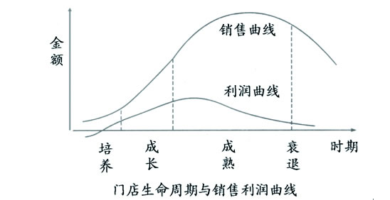 不断开店,总会有好与坏的区分,经营好的门店要持续培养良好的经营势头,经营差的门店则要努力提升门店“体力”,否则可能面临关店的危险。但不管门店经营好坏,都会有死亡的那一天,谁也无法幸免。门店死亡是竞争的结果,是优胜劣汰的结果,更是顾客选择的结果。作为门店经营者,谁也不愿意面临死亡的那一天,但这一天终将会来临。所以,对于门店经营者来说,如何延长门店的寿命才是职业使命。 笔者在管理连锁门店的经营中,努力让门店在竞争中占有一席之地,确保生命的继续,努力将新开门店培养好,成为公司的健康宝宝。但不管怎样,总有些门店还是无法逃脱关店的宿命。选择关店的主要原因有二:一是商圈变化造成替代时,无法救店,选择关闭;二是门店开业后经过一段时间的培养,无法达到预期目标时主动放弃,提前结束门店的生命。 门店生命周期的四个阶段 门店如同商品一样,都会经历生命周期。以下借用商品的生命周期理论,来探讨门店的生命周期,即培养期、成长期、成熟期和衰退期。经营者要清晰地知道所管理门店属于生命周期的哪个阶段,并依据每个生命周期的特点采取适合的策略及应对措施。