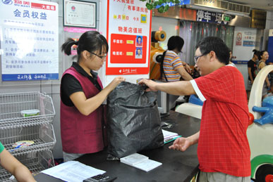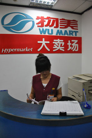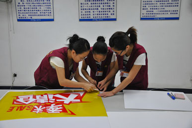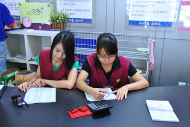 学生在大卖场总台走科轮岗。学习各科室相关制度和规范