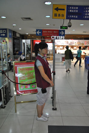 学生在防损科走科轮岗,学习如何在门店的出口主通道进行防损