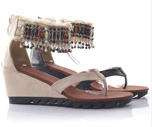 2011女鞋新款 批发女鞋 民族风夹脚坡跟凉鞋 549-3