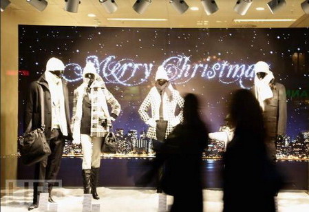 除了挂满缤纷装饰品的圣诞树之外,零售商圣诞橱窗布置也总能成为街边最亮丽的一道风景线,今年商家没有吝啬布置成本支出,五彩斑斓的霓虹灯映射出一片繁荣的假日购物景象。