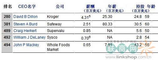食品市场零售商首席执行官薪酬榜