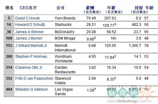 连锁酒店首席执行官薪酬排行榜: