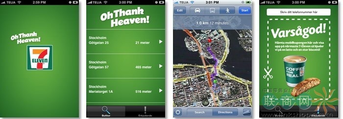 除此之外,该应用程序还扮演着“商店定位仪”的角色。经调查这款7-11应用程序目前在瑞典iphone/ipod touch的用户圈内,周下载数达到了2500次。