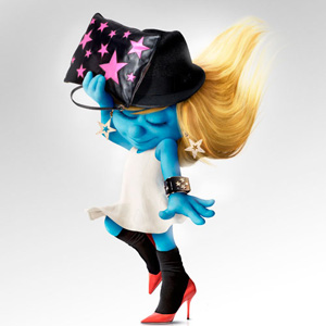 据悉,这个拥有着蓝色皮肤的小美人儿也同时“肩负”了为即将上映的卡通电影《蓝精灵》做宣传,时尚厂商与电影厂商所谓的强强联手创造的“双赢广告效益”让人不可忽视。此外,蓝精灵这一系列的造型都在“山寨”顶级模特的经典造型达到宣传设计大师秋冬季时尚理念的效果。