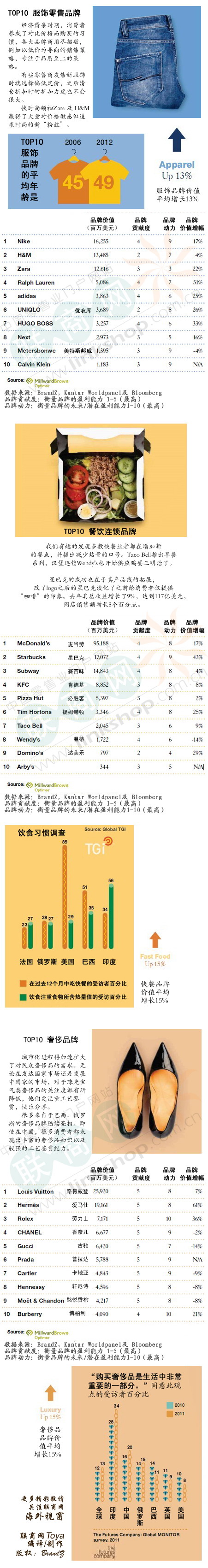 【全球服饰、奢侈品牌、快餐TOP10集】+【有趣调查】——以Millward Brown发布的最具价值百强品牌榜为基础的细分,主要展现各大品牌的盈利能力