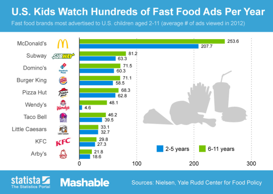 造成美国儿童体重过胖的原因可能跟美国儿童饮食结构中摄入过多高热量的食物有关,根据2012年的数据,平均每个美国儿童每年看到超过1000个快餐广告,美国儿童肥胖倒是不足为奇。